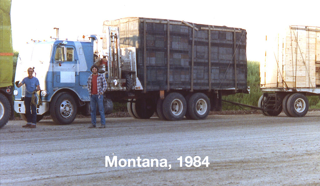 Pictured, Bob Binnie (on the right) and his father moving bees back in 1984.
