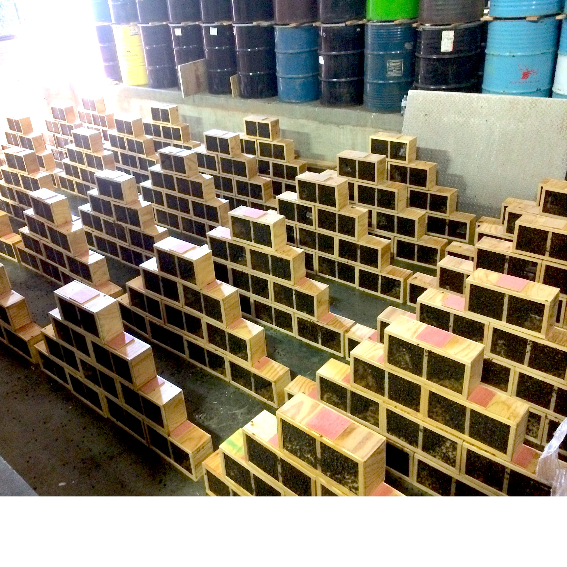 Each include approximately three pounds of bees in a wood and screen cage, a can of sugar syrup, and a new queen.
